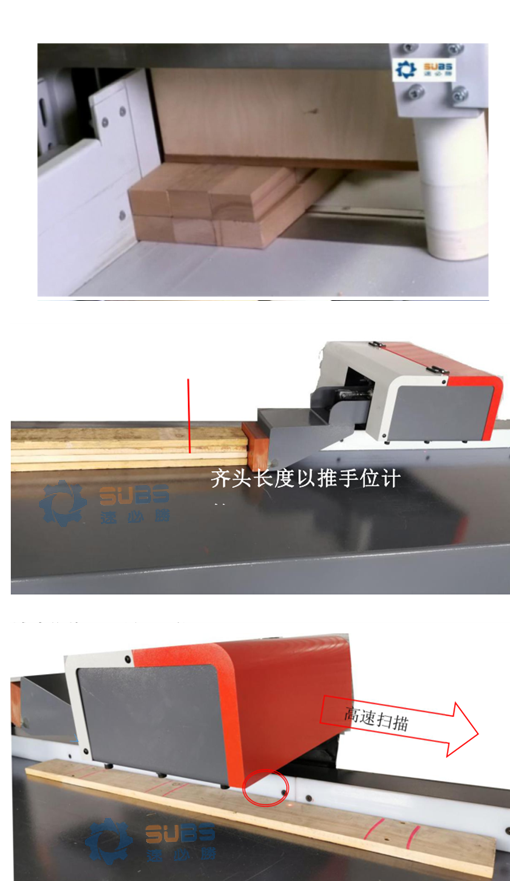 齊頭量:熒光位置、探頭位置、鋸片位置。